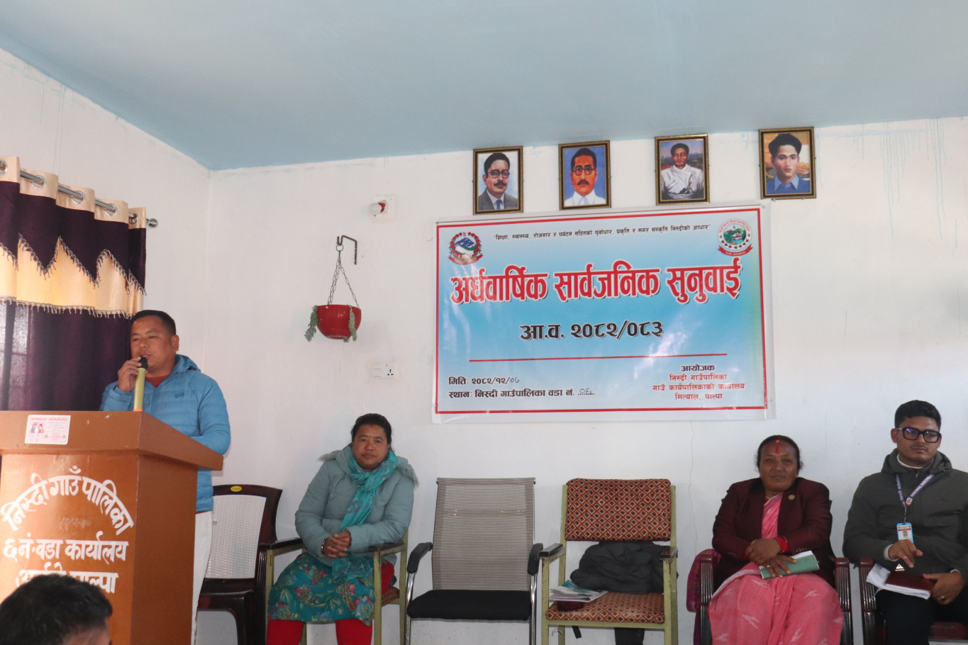निस्दी गाउँपालिकाको आयोजनामा आ.व २०८२/०८३ को अर्धवार्षिक सार्वजनिक सुनुवाई कार्यक्रम निस्दी गाउँपालिका वडा नं. ६ को सभाहलमा मिति २०८२ चैत ७ गतेका दिन वडा अध्यक्ष श्री मेख बहादुर सुनारी ज्यूको अध्यक्षतामा सम्पन्न भएको छ ।