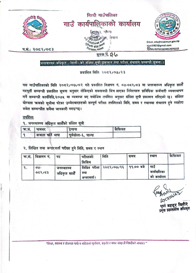 जनस्वास्थ्य अधिकृत सातौ पदको संक्षिप्त सूची तथा परीक्षा संचालन सम्बन्धी सूचना ।