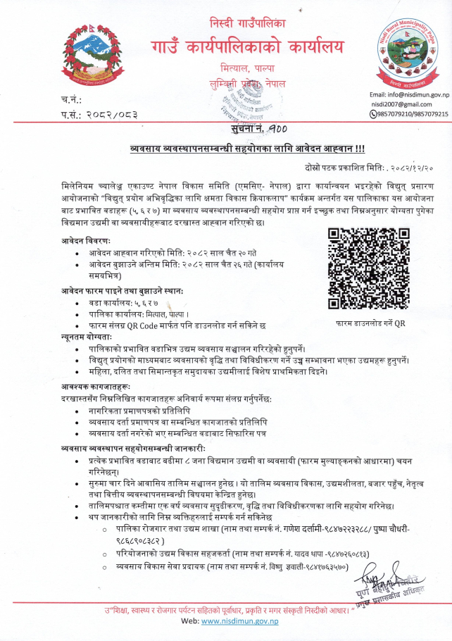 » व्यवसाय व्यवस्थापन सम्बन्धी तालिममा सहभागी हुनका लागि आवेदन आह्वान सम्बन्धी सूचना ।