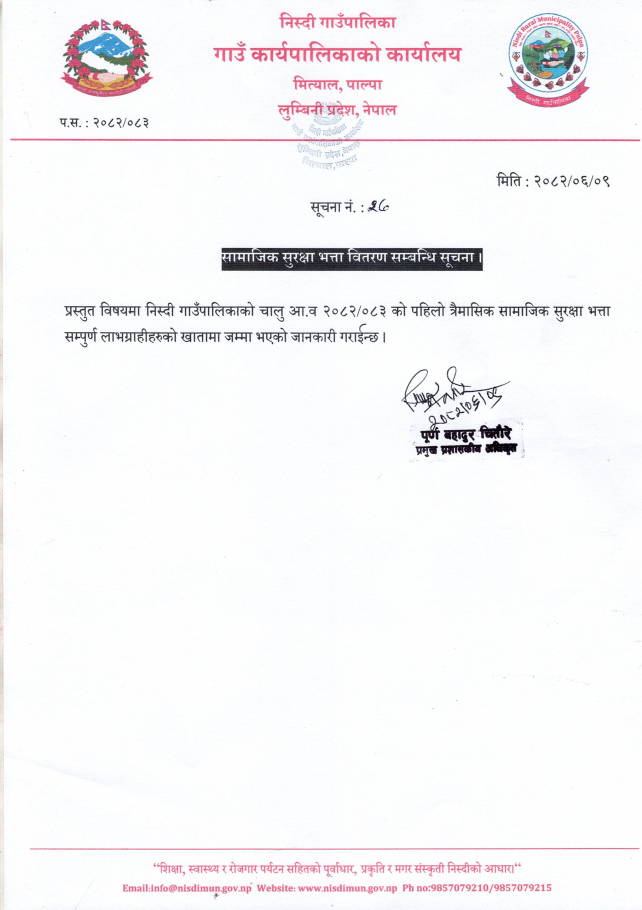 सामाजिक सुरक्षा भत्ता वितरण सम्बन्धि सूचना ।