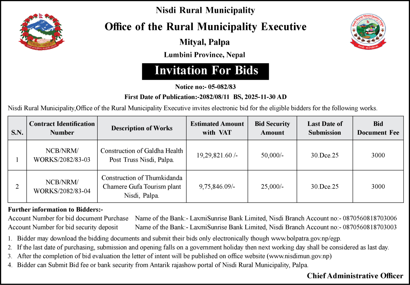 सार्वजनिक खरिद/बोलपत्र सूचना