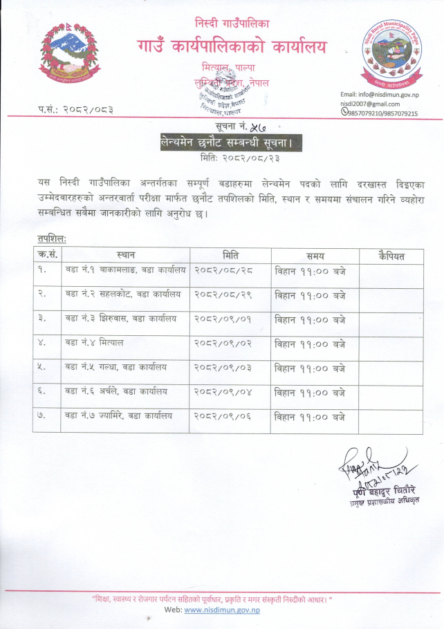 लेन्थमेन छनौट सम्बन्धी सूचना ।