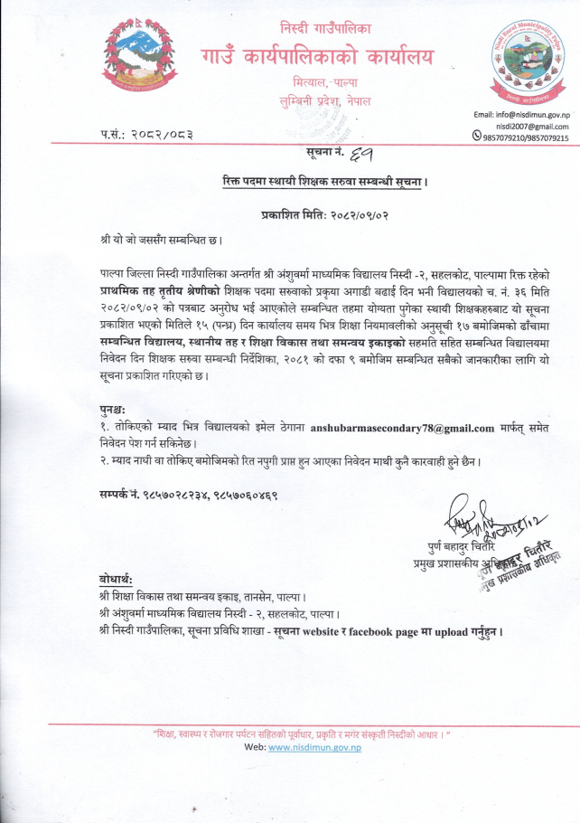 » रिक्त पदमा स्थायी शिक्षक सरुवा सम्बन्धी सूचना।