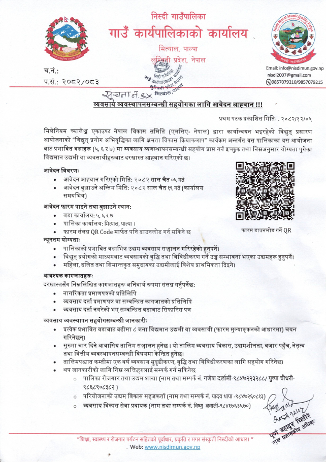 » व्यवसाय व्यवस्थापन सम्बन्धी तालिममा सहभागीका लागि आवेदन आह्वान सम्बन्धी सूचना ।