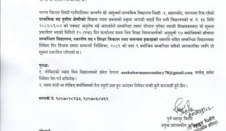 आज मिति २०८१/०६/०२ गते बुधबारका दिन यस निस्दी गाउँपालिकाको आयोजनामा "ज्ञान, विज्ञान, सीप उद्यम र मौलिकता:साझेदारी र प्रणालीगत सक्षमता" भन्ने मूल नारा सहित राष्ट्रिय शिक्षा दिवस-२०८१ विभिन्न कार्यक्रम गरी सम्पन्न गरिएको छ, कार्यक्रमको फोटोहरु