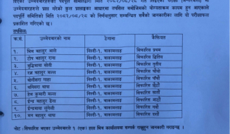 कृषि स्नातक र मनोसामाजिक परामर्शकर्ताको संक्षिप्त सूची प्रकाशन तथा लिखित परिक्षा संचालन सम्बन्धी सूचना ।