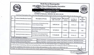 नदीजन्य पदार्थ उत्खनन् संकलन तथा विक्री गर्ने कार्यको E-BID ठेक्का बन्दोबस्ती सम्बन्धी ३० दिने सूचना।