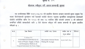 नदीजन्य पदार्थ उत्खनन् संकलन तथा विक्री गर्ने कार्यको E-BID ठेक्का बन्दोबस्ती सम्बन्धी दोस्रो पटक प्रकासित १५ दिने सूचना।