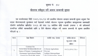 साझेदारीमा ५०% अनुदान व्यवसायिक फार्म प्रवर्द्धन कार्यक्रम सञ्चालनका लागि प्रस्ताव आह्वान सम्बन्धी सूचना ।