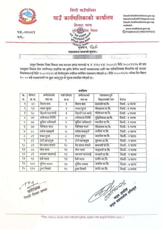 निस्दी गाउँपालिका, मित्याल, पाल्पा लुम्बिनी प्रदेश
