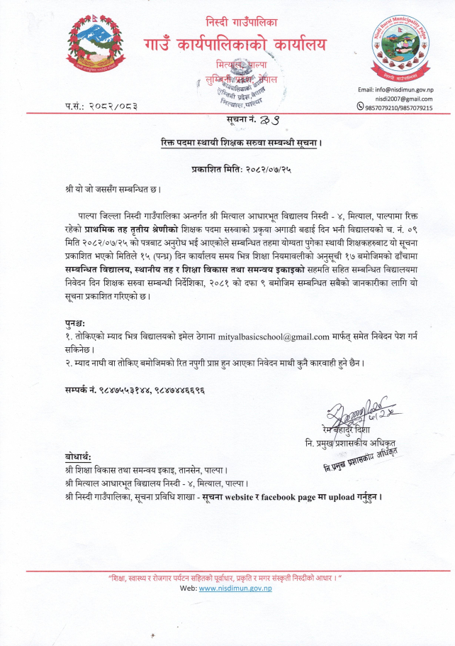 रिक्त पदमा स्थायी शिक्षक सरुवा सम्बन्धी सूचना ।
