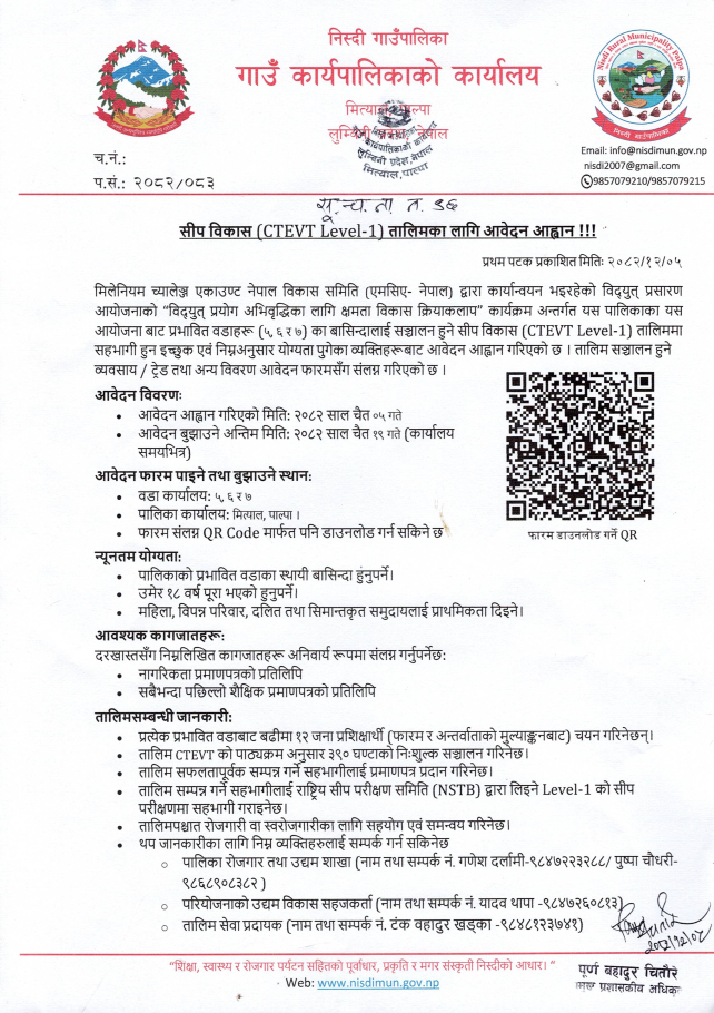» सीप विकास तालिमका लागि आवेदन सम्बन्धी सूचना ।