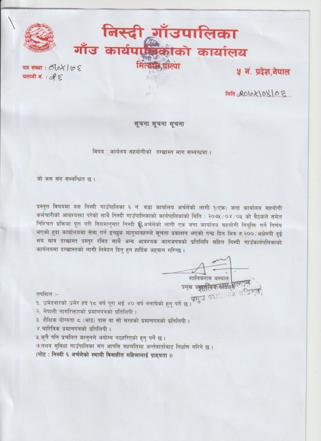 » सुचना निस्दी ६ को कार्यालय सहयोगीको दरखास्त आह्वान सम्बन्धमा