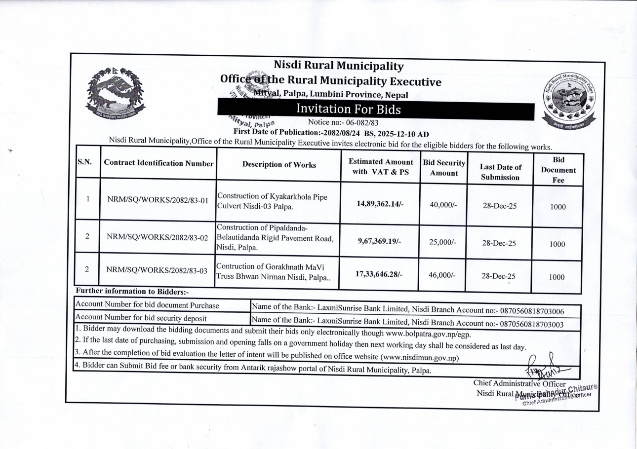 सार्वजनिक खरिद/बोलपत्र सूचना
