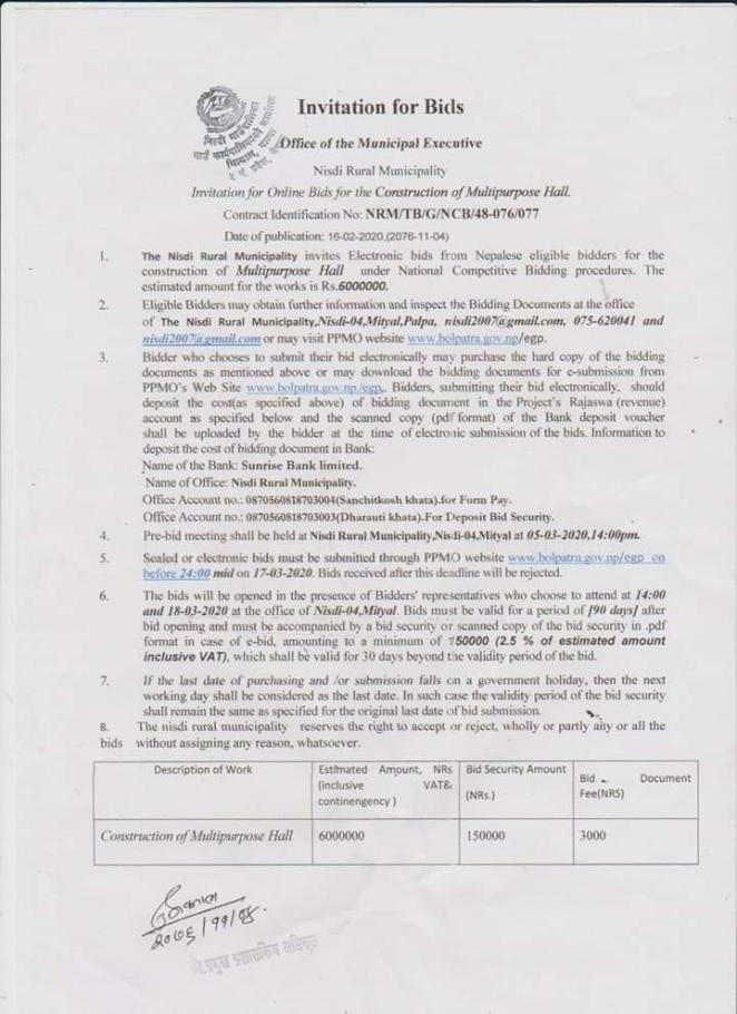 सार्वजनिक खरिद/बोलपत्र सूचना