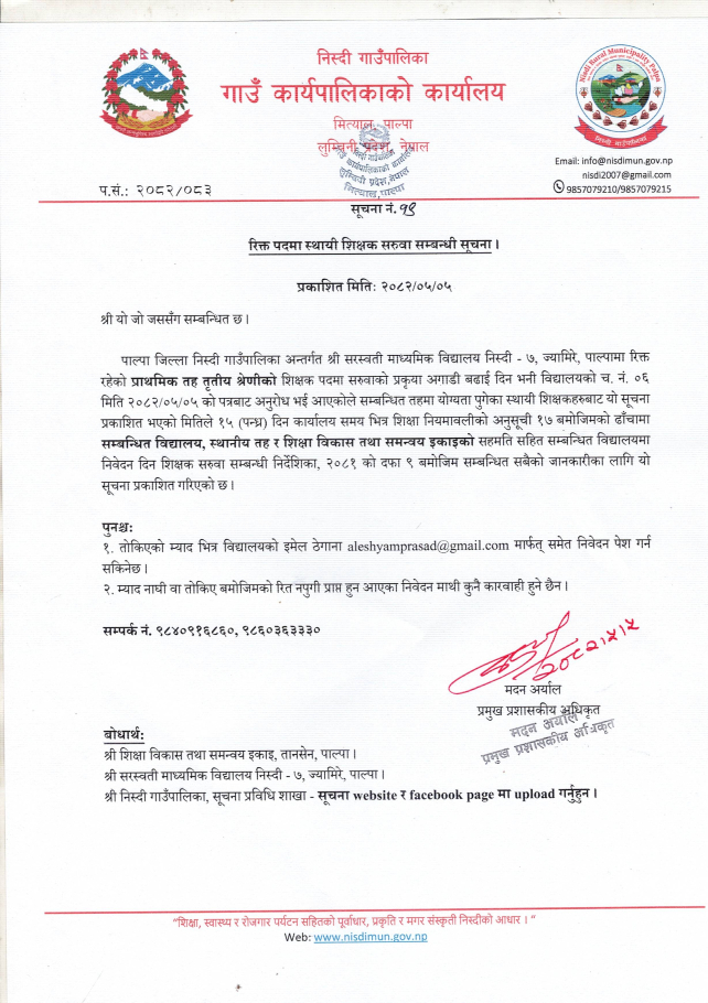 रिक्त पदमा स्थायी शिक्षक सरुवा सम्बन्धी सूचना ।