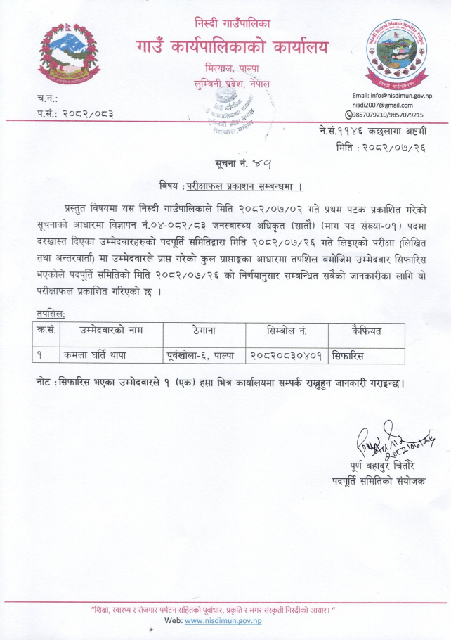 » जनस्वास्थ्य अधिकृत (सातौ) पदको परीक्षाफल प्रकाशन सम्बन्धी सूचना ।