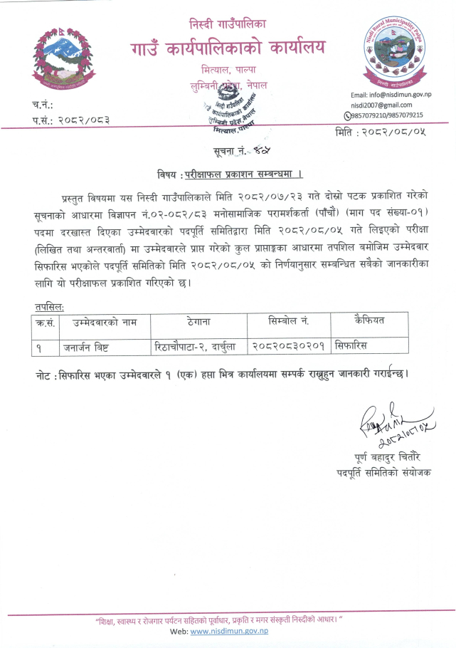 » मनोसामाजिक परामर्शकर्ताको परीक्षाफल प्रकाशन सम्बन्धी सूचना ।