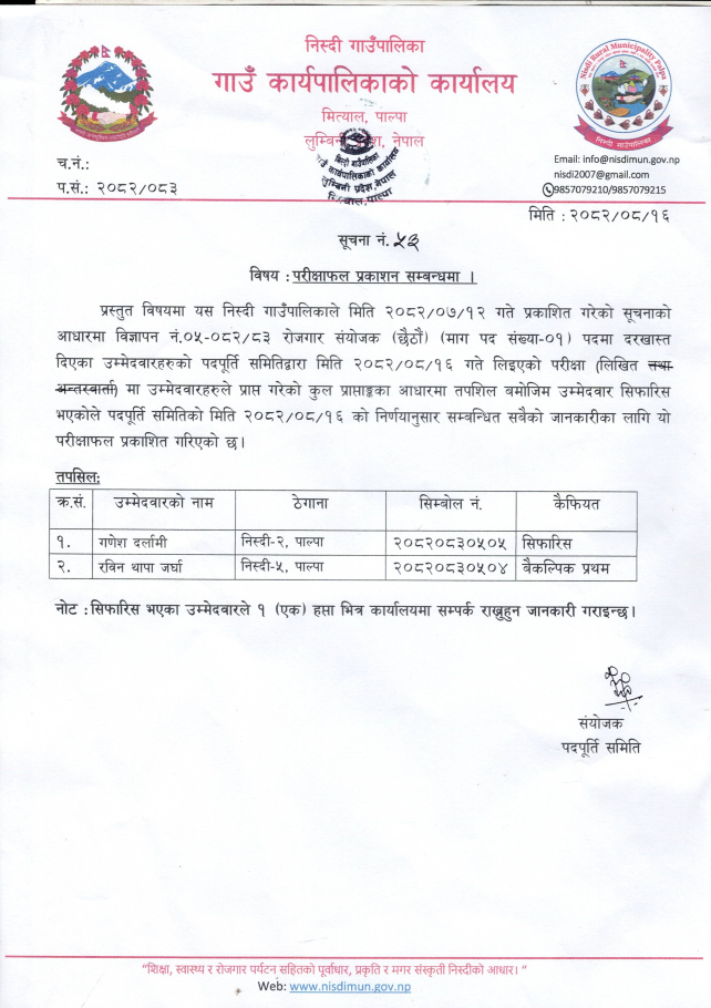 » रोजगार संयोजकको परीक्षाफल प्रकाशन सम्बन्धी सूचना ।