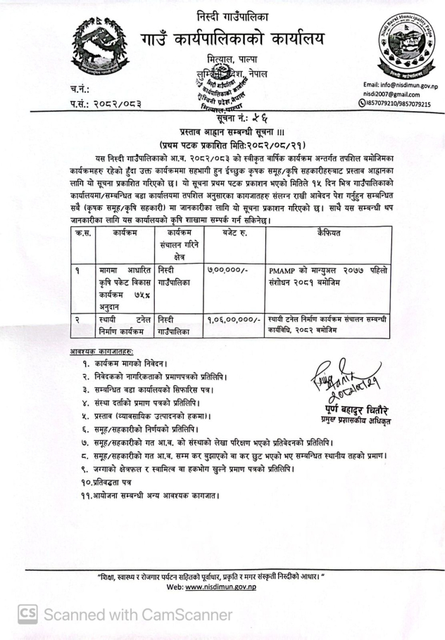 निस्दी गाउँपालिकाको मिति २०७४।११।२७ गते को विशेष गाउँ सभाबाट पारित योजना तथा बजेट विवरण