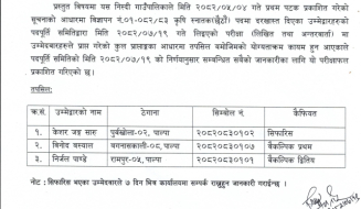 कृषि स्नातक र मनोसामाजिक परामर्शकर्ताको संक्षिप्त सूची प्रकाशन तथा लिखित परिक्षा संचालन सम्बन्धी सूचना ।